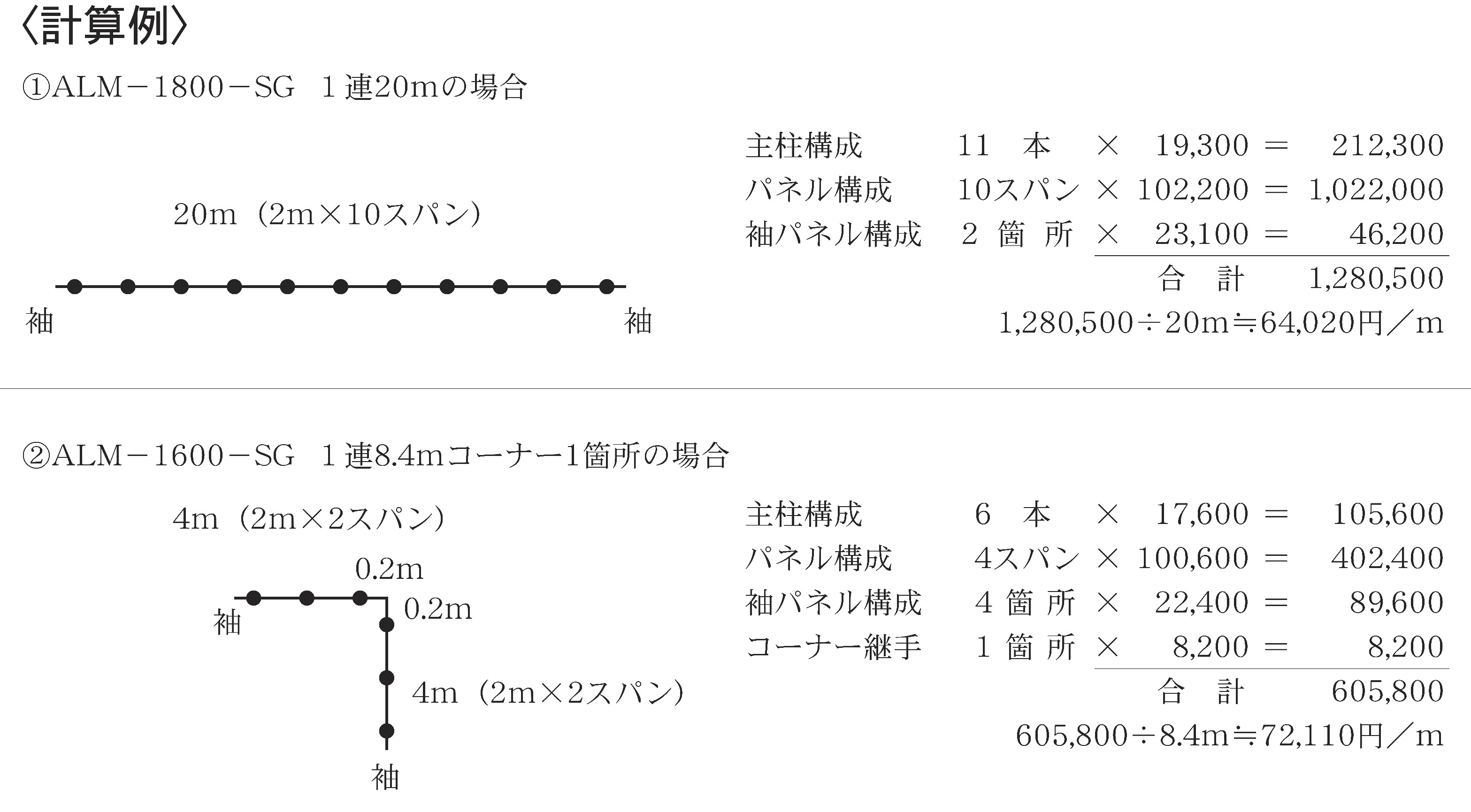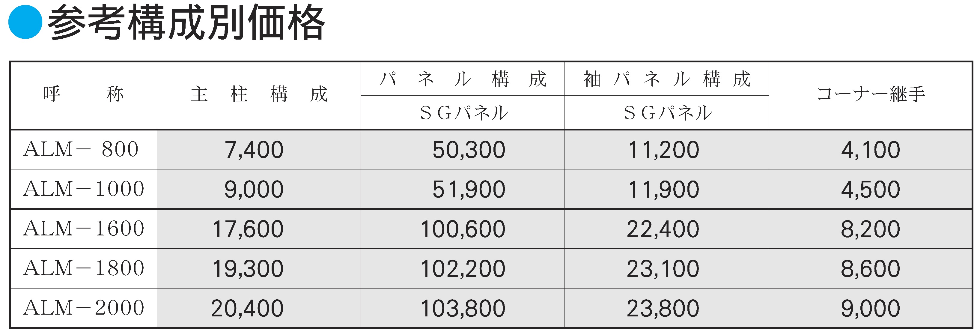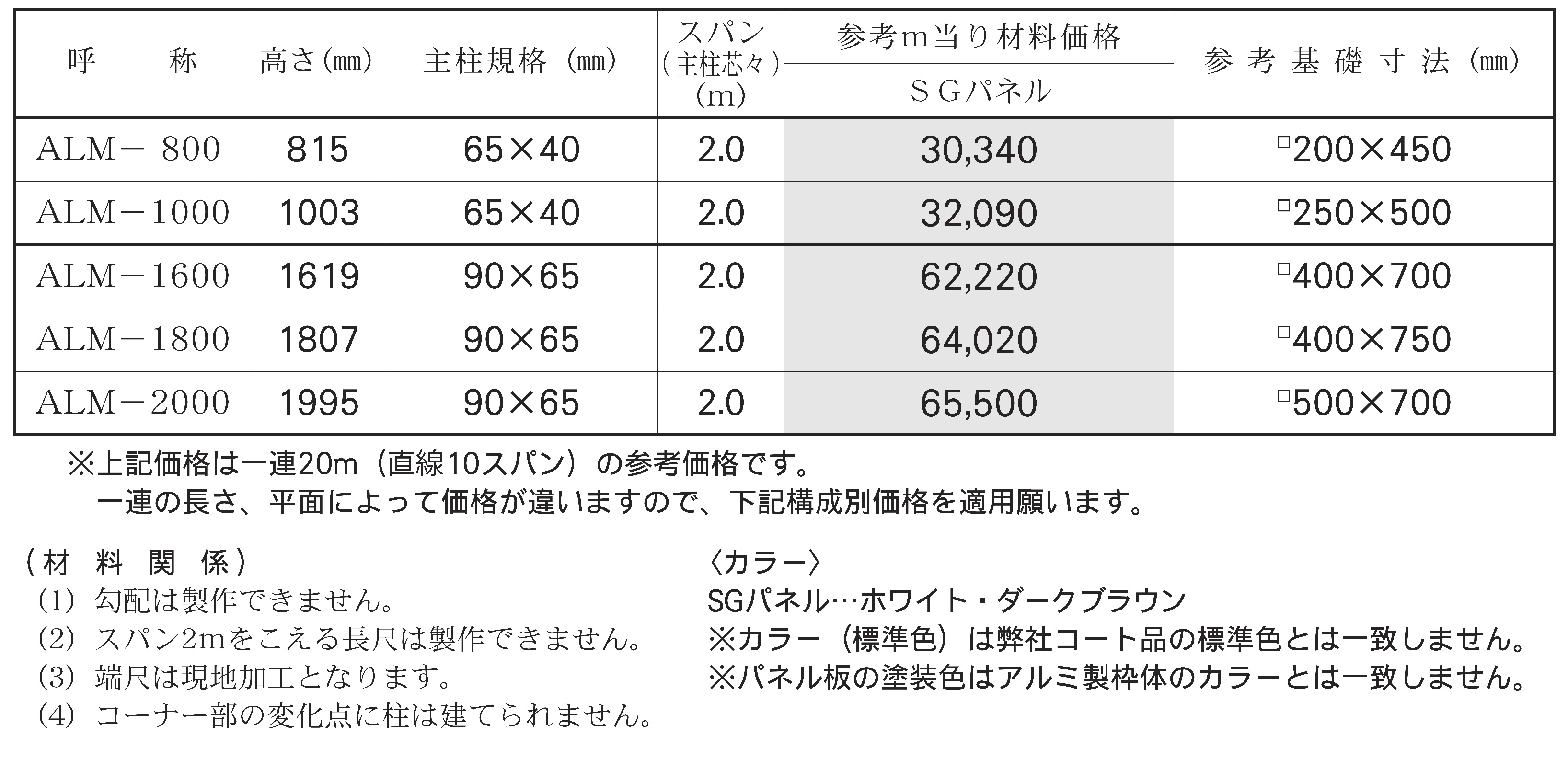 呼称\寸法 | 高さ (mm) | 主柱(mm) | パネル幅 (mm) | 単位質量 (kg/m) | 参考基礎寸法 (mm) | ||