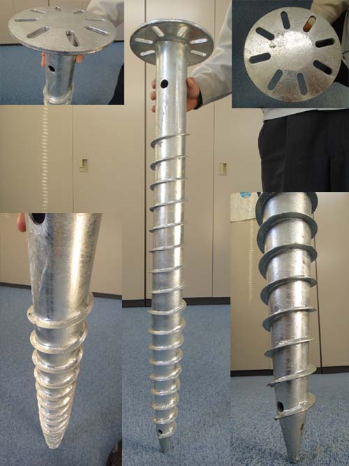 太陽光発電・メガソーラー架台の基礎となるスクリュー杭(スパイラル杭)です。