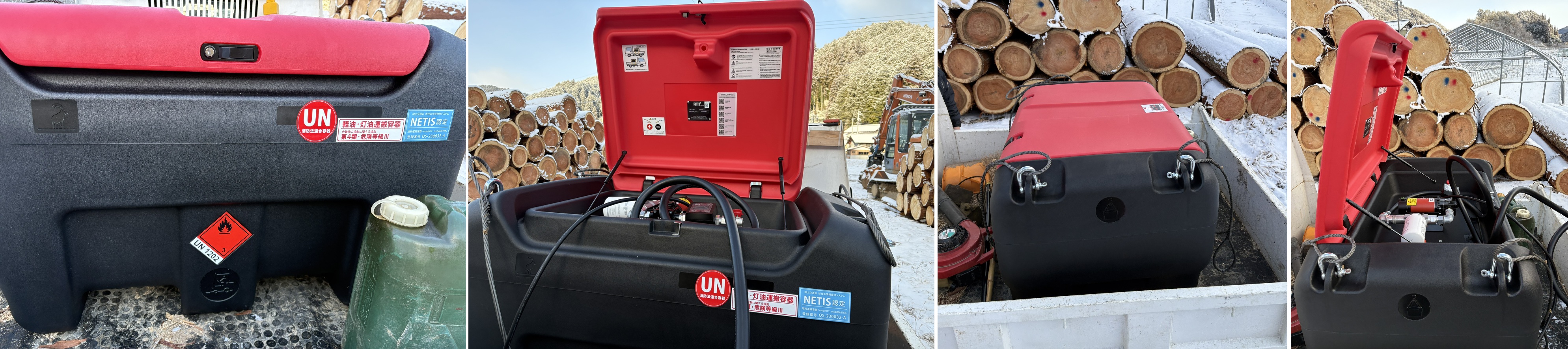 運搬容器は軽油・灯油専用の運搬容器として開発し、輸送用機械での積み下ろしを前提として設計されています