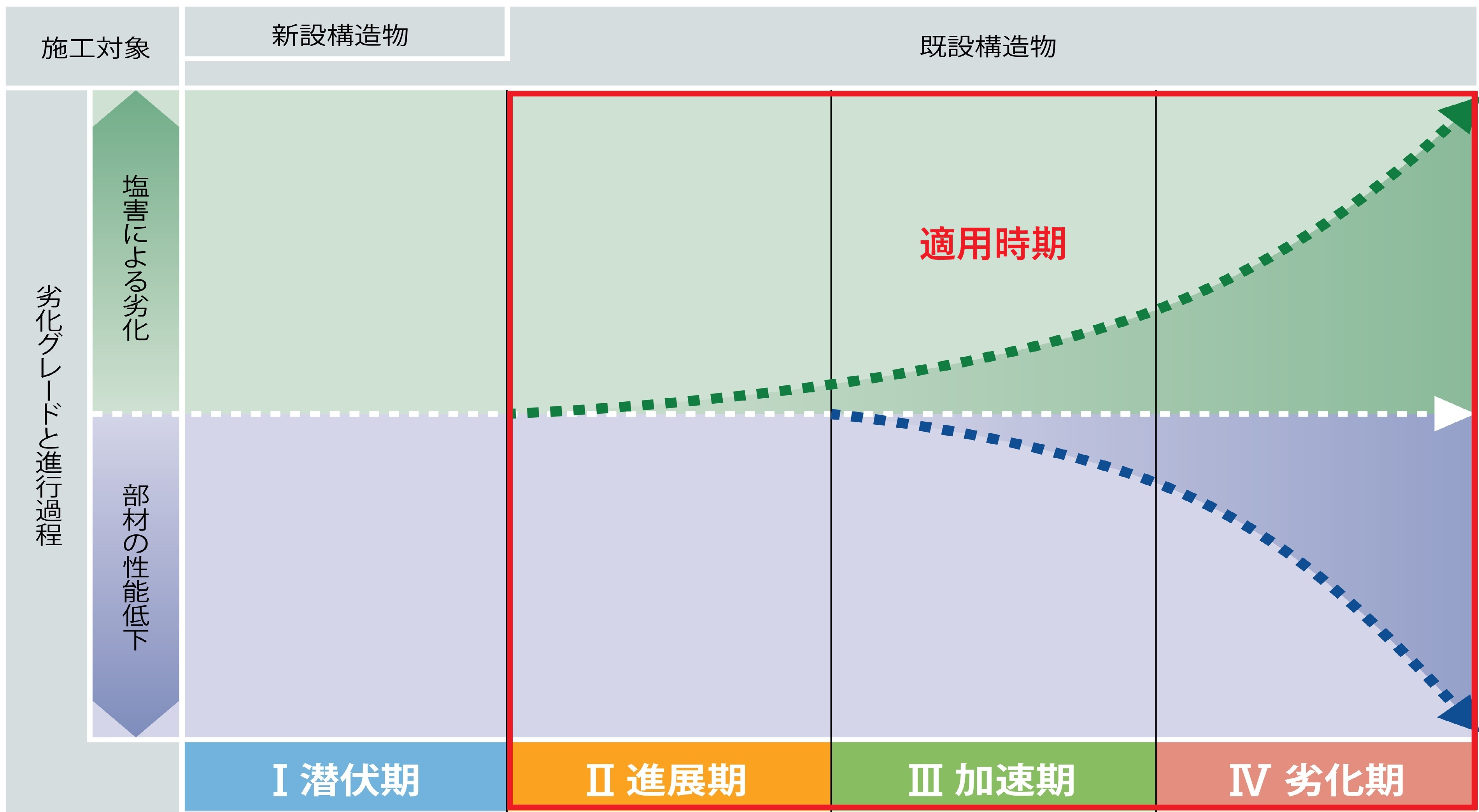 ・同時に塩化物イオンや水分の侵入を抑え、長期的な耐久性を向上