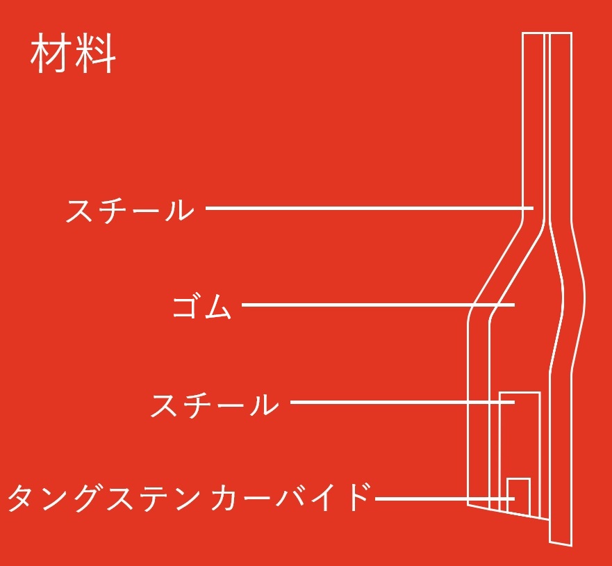 ゴムで加硫成形されているため、最も過酷な路面でも路面を傷つけることなく除雪可能です。
