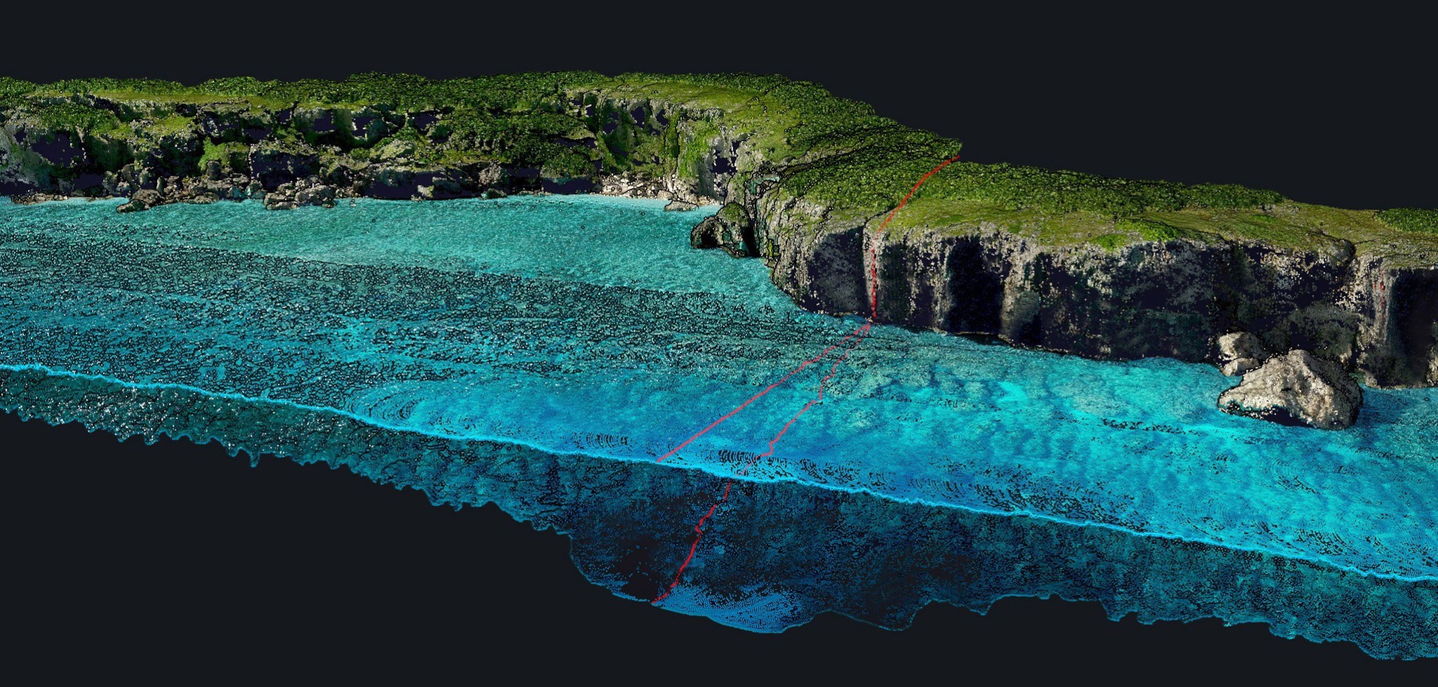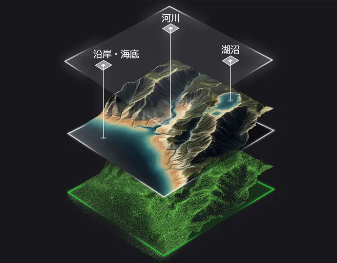 このフルウェーブフォームLiDARシステムは、水中ポイントと周囲の地形との連続性を保証します。
