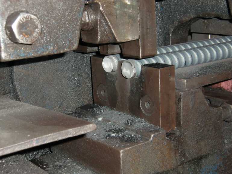 平刃シャー切断面と比べるとバリの発生が最小限に抑えれるため、ねじ切りなどの後工程がある場合に使われます。