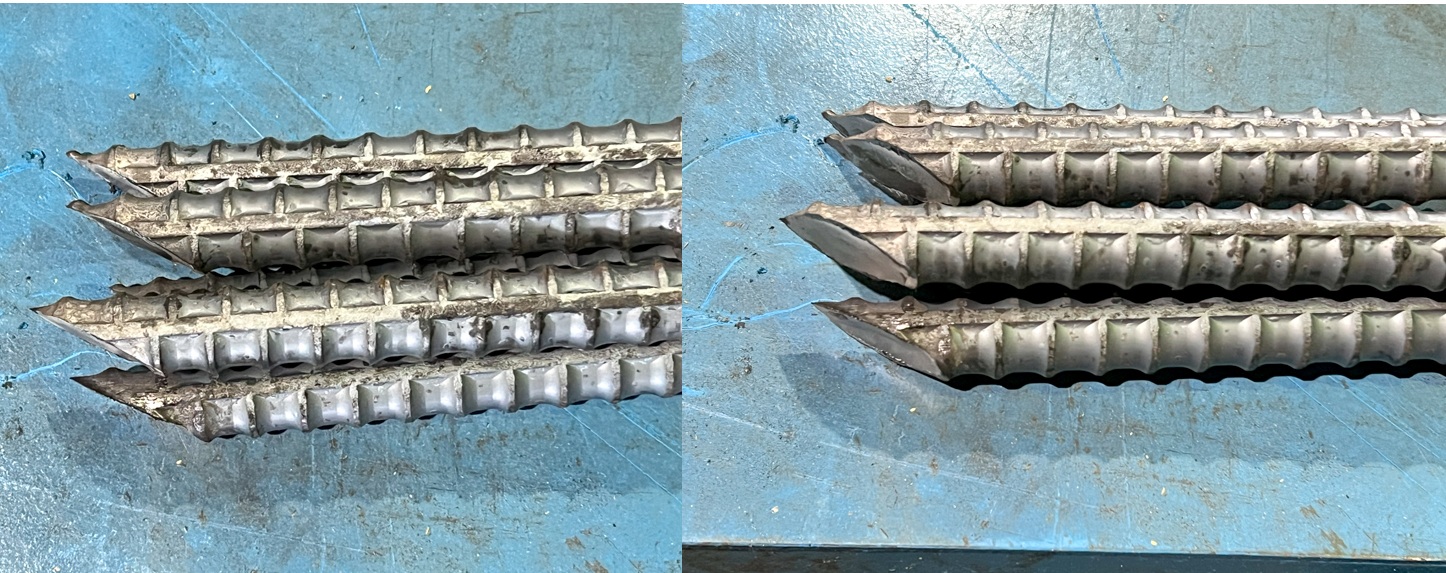 矢先端が尖頭(円錐状・砥石状)に加工された鉄筋